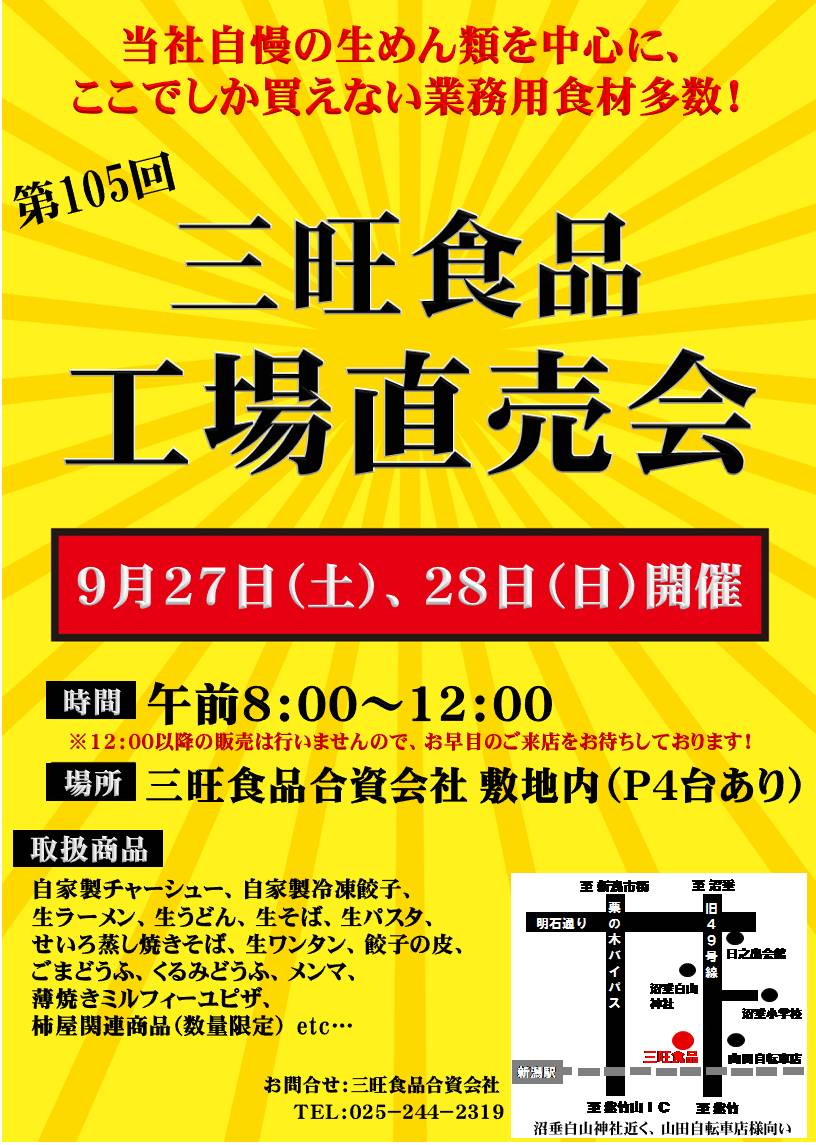 TOP > 新着情報 > 第105回 工場直売会 開催のお知らせ