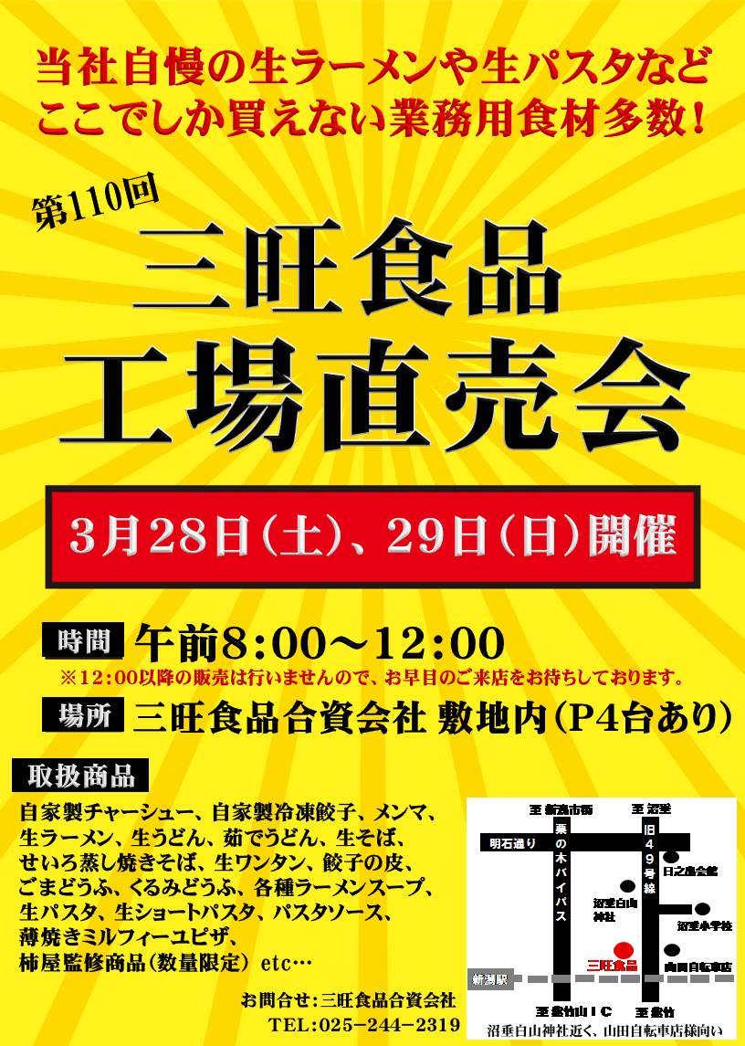 第110回 工場直売会 開催のお知らせ