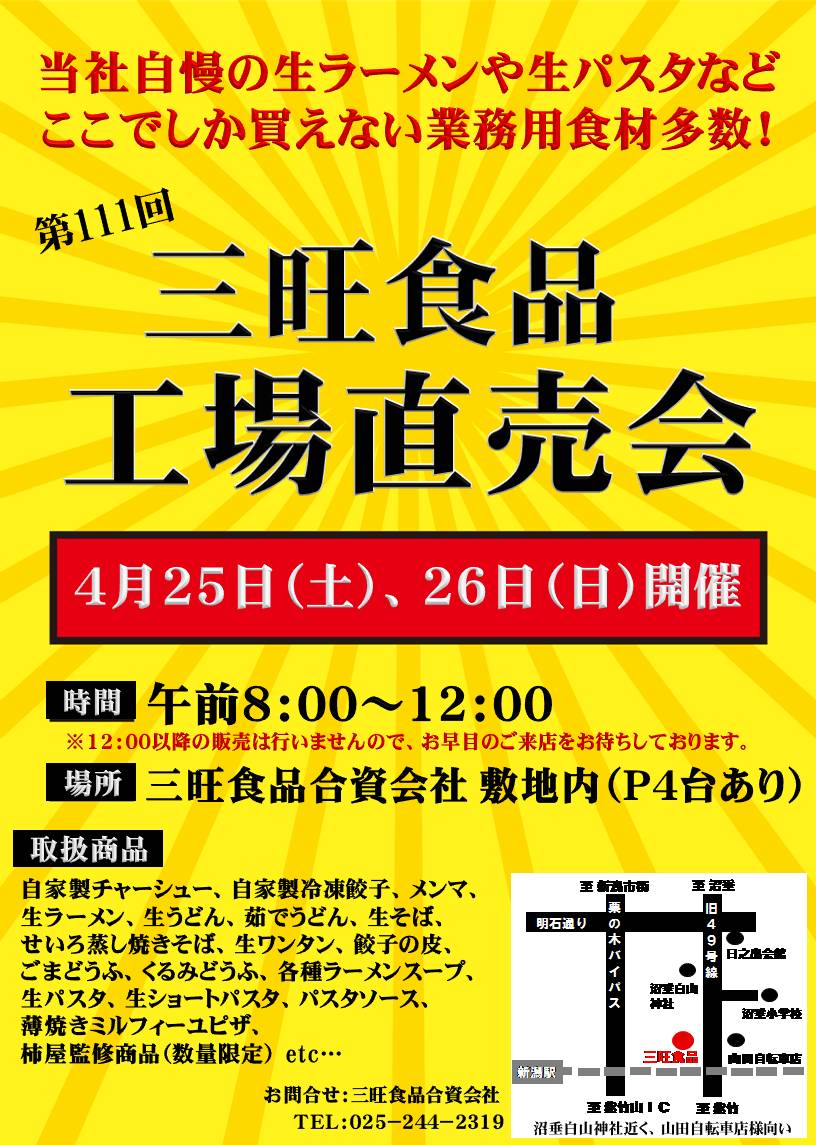 第111回 工場直売会 開催のお知らせ
